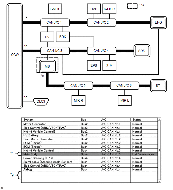 | MB | Main body ECU (multiplex network body ECU) | Main Body | Installed on all vehicles | |