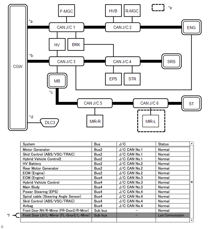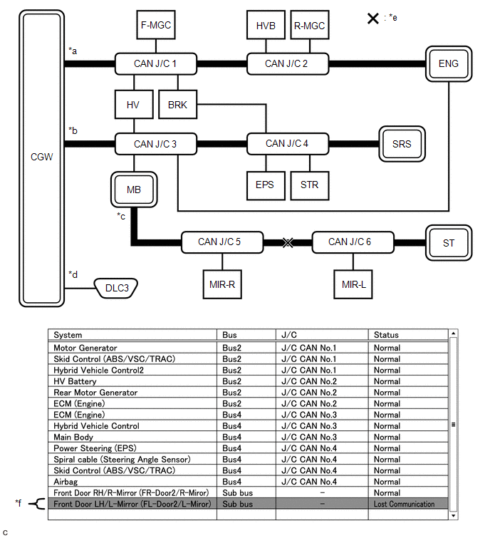 | Bus 5 | MIR-R | Outer mirror control ECU assembly RH | Front Door RH/R-Mirror (FR-Door/R-Mirror) | Vehicles with Seat Position Memory System |