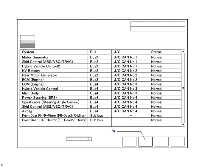 (b) Confirm that the "Communication Bus Check" screen is displayed and the ECUs and sensors that are normally connected to the CAN communication system are displayed.