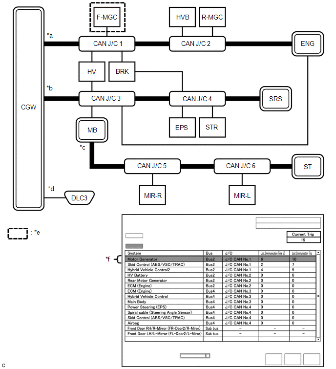 | Bus Monitoring ECU | Displays the gateway function equipped ECU which monitors the selected bus or sub bus. |