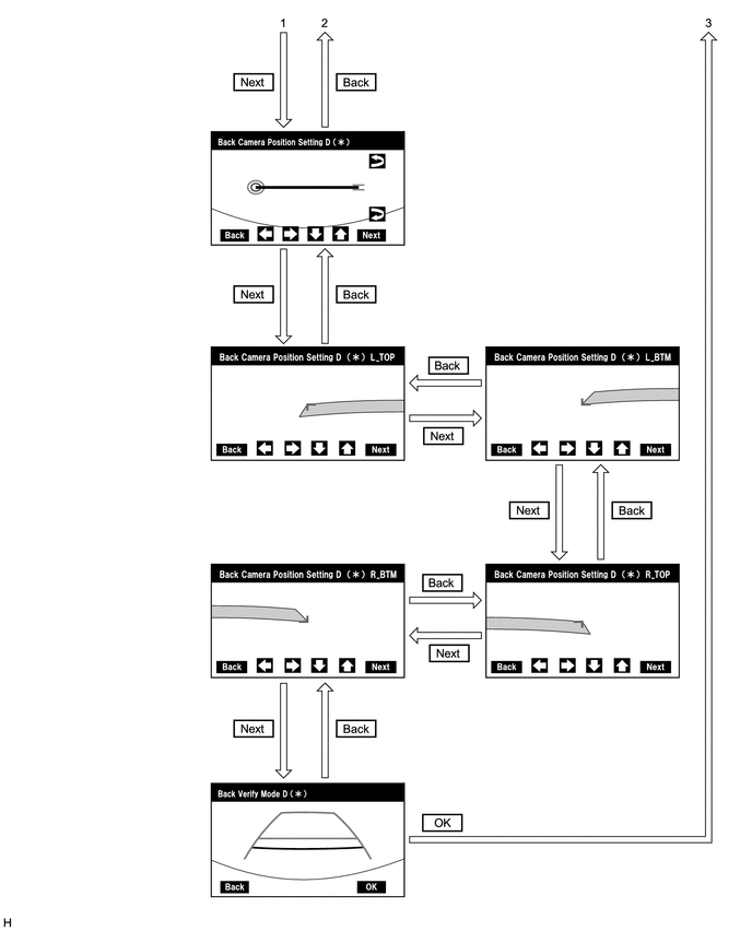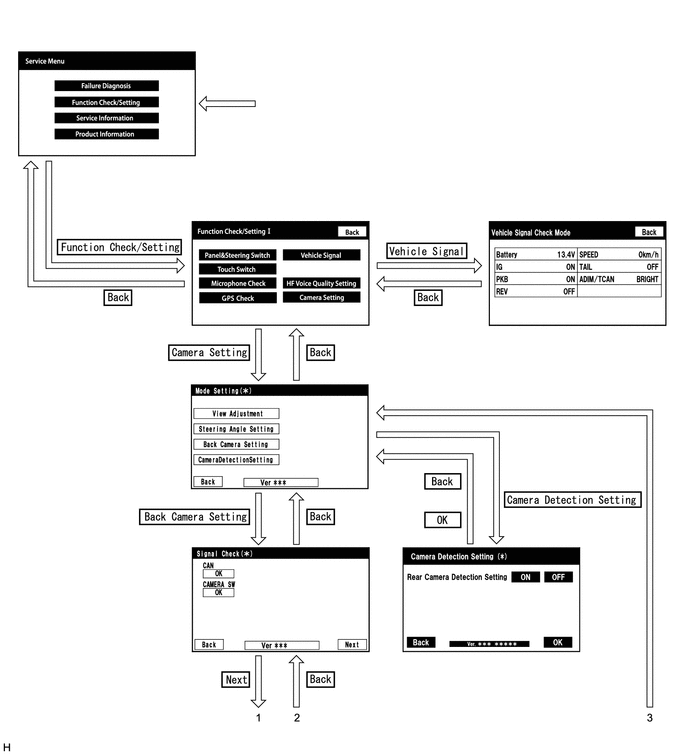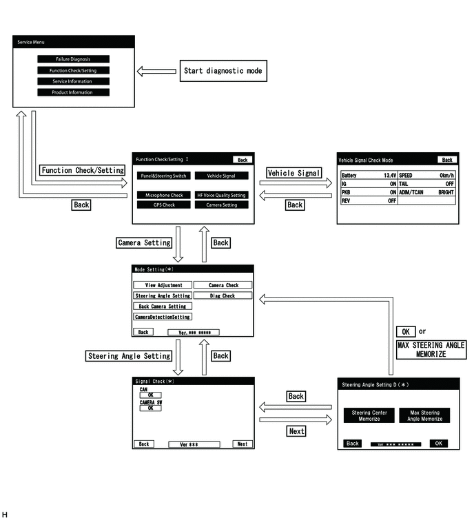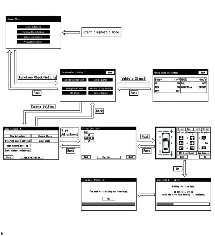 DIAGNOSIS SCREEN TRANSITION (BACK CAMERA SETTING)
