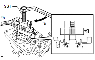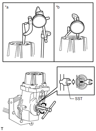 (b) Using SST, rotate the transmission coupling assembly forward and in reverse and measure the vertical runout.