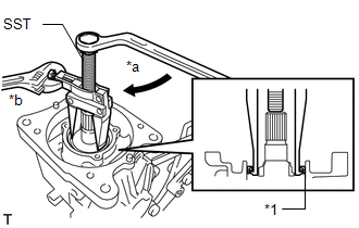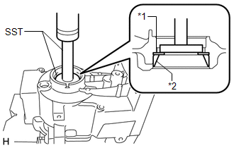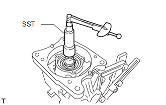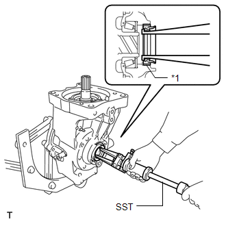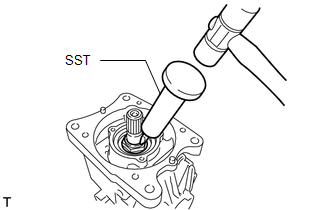 | (a) Using SST, remove the rear drive shaft oil seal RH from the rear differential carrier sub-assembly. SST: 09308-00010 |