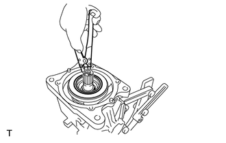 | (a) Attach the claws of SST to the rear drive pinion front tapered roller bearing (outer race) from the notches in the differential carrier sub-assembly. SST: 09612-65014 09612-01020 09612-01050 |