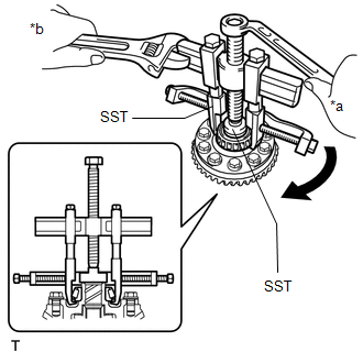 | (b) Using SST, secure the differential drive pinion and remove the rear drive pinion nut from the differential drive pinion. SST: 09556-52010 SST: 09564-16020 |