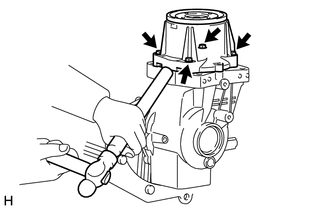 | (b) Using a brass bar and hammer, lightly tap the differential side bearing retainer and remove it. NOTICE: