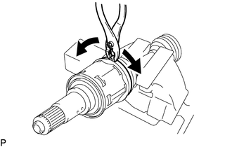 | (e) Using a snap ring expander, remove the shaft snap ring from the front drive outboard joint shaft assembly. |
