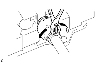| (b) Using pliers, separate the front No. 2 axle inboard joint boot clamp as shown in the illustration. |