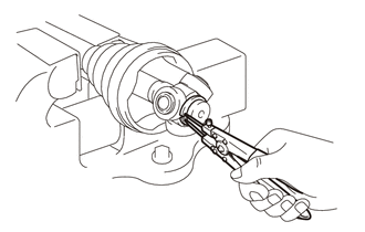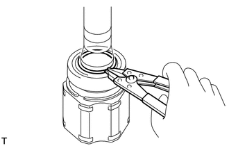 | (a) Using a snap ring expander, remove the drive shaft hole snap ring. |