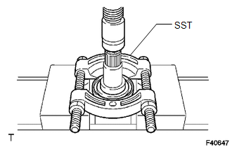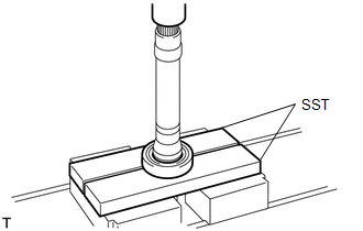 | (b) Using SST and a press, remove the front drive shaft bearing. SST: 09527-10011 NOTICE: Do not drop the front drive inboard joint assembly. |