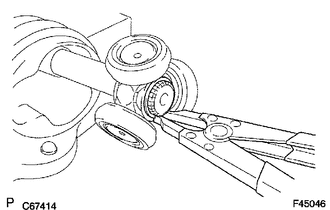 | (e) Using a snap ring expander, remove the shaft snap ring from the front drive outboard joint shaft assembly. |