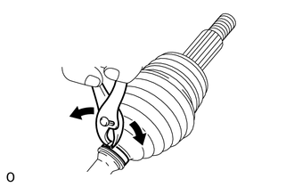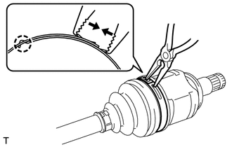 | (1) Using needle-nose pliers, remove the rear No. 2 drive shaft inboard joint boot clamp LH as shown in the illustration. |