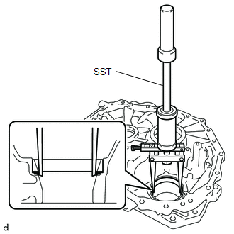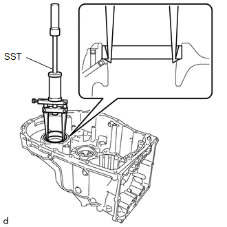 Align the claw of the SST with the indentation of the automatic transaxle case sub-assembly when removing the parts.