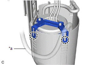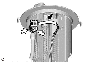 | (h) Disengage the claw to disconnect the fuel pump harness from the suction filter. |