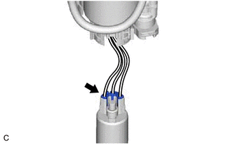| (j) Disconnect the fuel pump harness connector to remove the fuel pump harness from the fuel pump. |