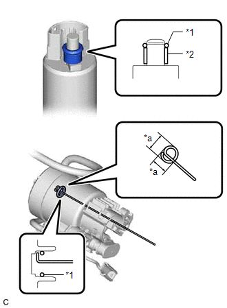 | (k) Remove the O-ring and fuel pump spacer from the fuel pump. NOTICE: Be careful not to damage the sealing surface. HINT: If the O-ring still remains in the fuel filter, remove it using a wire tip (1 mm (0.0394 in.) diameter) that is formed as shown in the illustration. |