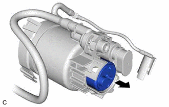 (c) Disengage the clamp to disconnect the fuel pump harness from the fuel suction plate sub-assembly.