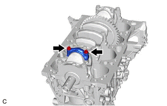 | (a) Remove the 2 crankshaft thrust washers from the No. 3 journal position of the cylinder block sub-assembly. |