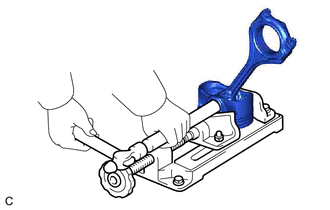 | (b) Using a brass bar and a hammer, lightly tap out the piston pin and remove the connecting rod. HINT: