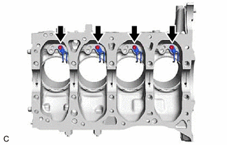 | (a) Using a 5 mm hexagon wrench, remove the 4 bolts and 4 No. 2 oil nozzle sub-assemblies from the cylinder block sub-assembly. |