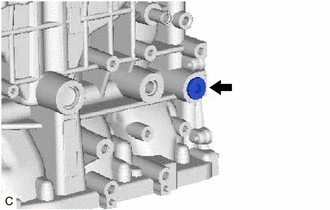 | (a) Using a 10 mm hexagon socket wrench, remove the No. 1 straight screw plug and gasket from the cylinder block sub-assembly. |