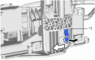 (3) Disengage the claw and slide the fuel suction plate sub-assembly and then separate it from the fuel sub-tank sub-assembly.