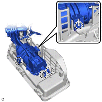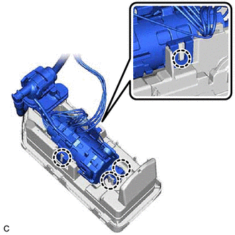 | (4) Disengage the 4 claws and remove the fuel suction plate sub-assembly from the fuel sub-tank sub-assembly. |
