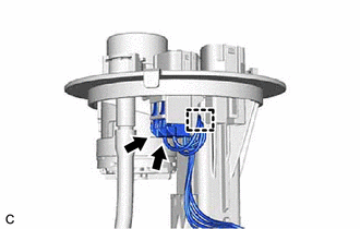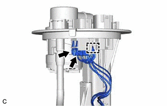 | (5) Disengage the claw and disconnect the fuel pump harness. |