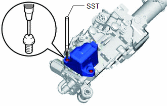 | (b) Using SST, strike a punch mark for drilling in the center of the steering lock set bolt. SST: 09622-00010 NOTICE: When striking the punch mark, in order to prevent impact force from being applied to the steering lock actuator assembly, do not use a normal center punch. |