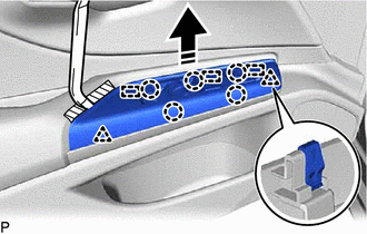 | (a) Using a moulding remover, disengage the 2 claws as shown in the illustration. |