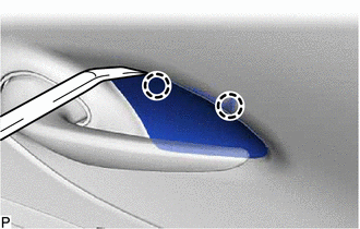 | (a) Disengage the 2 claws to remove the front door No. 2 service hole cover. |