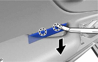 | (a) Using a moulding remover, disengage the 2 claws to remove the No. 2 door trim pad. |