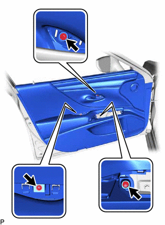 7. REMOVE POWER WINDOW REGULATOR SWITCH ASSEMBLY WITH FRONT DOOR UPPER ARMREST BASE PANEL (for Front Passenger Side)