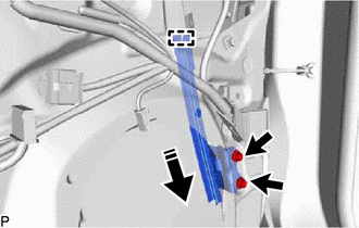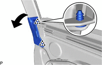 | (a) Disengage the 2 clips and disconnect the front door weatherstrip as shown in the illustration. |