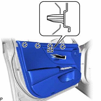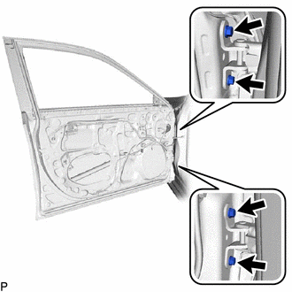 | (c) Disengage the 4 clips to remove the front door service hole cover. |