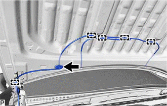 (b) Disengage the grommet to disconnect the washer hose assembly.