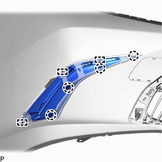 | (a) Disengage the 4 claws and 3 guides to remove the front bumper side moulding LH. |