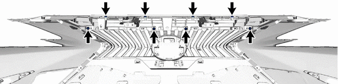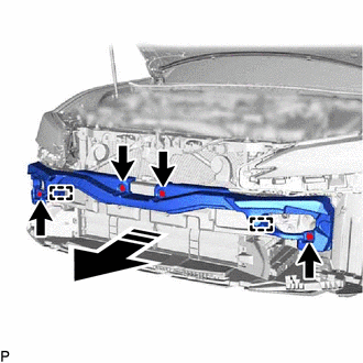 | (a) Disengage the 2 claws and 6 guides to remove the upper radiator grille moulding. |