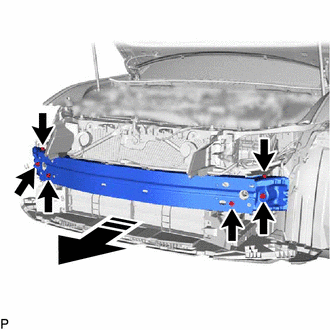 (d) Remove the 6 bolts and front bumper reinforcement sub-assembly as shown in the illustration.