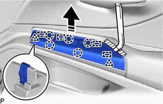 | (a) Using a moulding remover, disengage the 2 claws as shown in the illustration. |