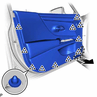 | (c) Disengage the 4 clips to remove the front door service hole cover. |