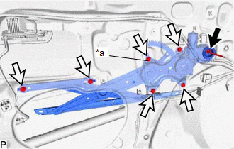 | (k) Remove the 2 bolts. NOTICE: After the bolts are removed, do not allow the front door glass sub-assembly to fall. |