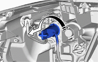 (a) Turn the headlight cord with the front side marker light bulb as shown in the illustration to disconnect them as a unit.