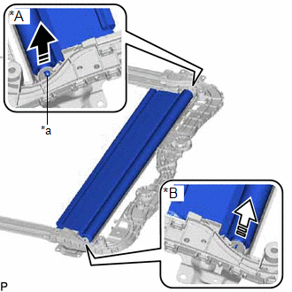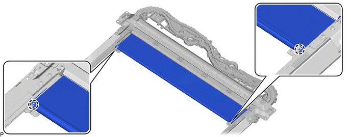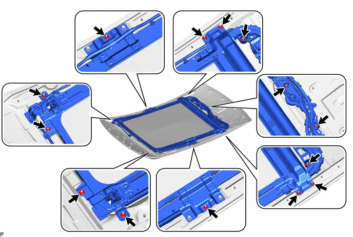 | (d) Remove the sliding roof sunshade plate. HINT: Use the same procedure for the RH side and LH side. |