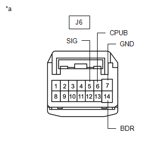 | J6-6 (CPUB) - Body ground | Power switch off | 11 to 14 V |