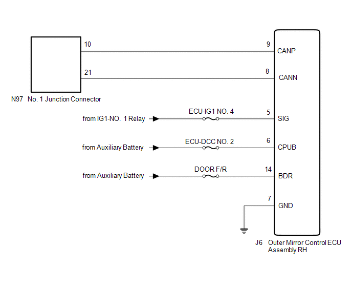 | 1. | CHECK FOR OPEN IN CAN BUS LINES (OUTER MIRROR CONTROL ECU ASSEMBLY RH BRANCH LINE) |