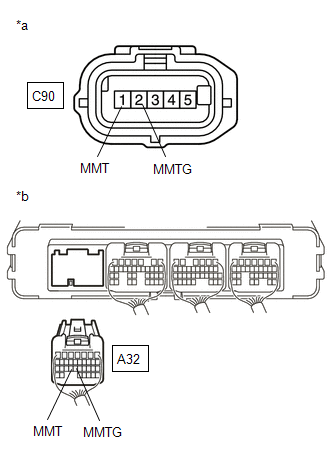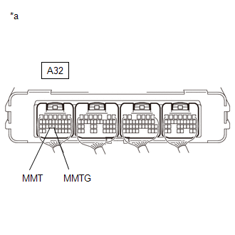 | (a) Connect terminals 24 (MMT) and 23 (MMTG) of the A32 hybrid vehicle control ECU connector. |
