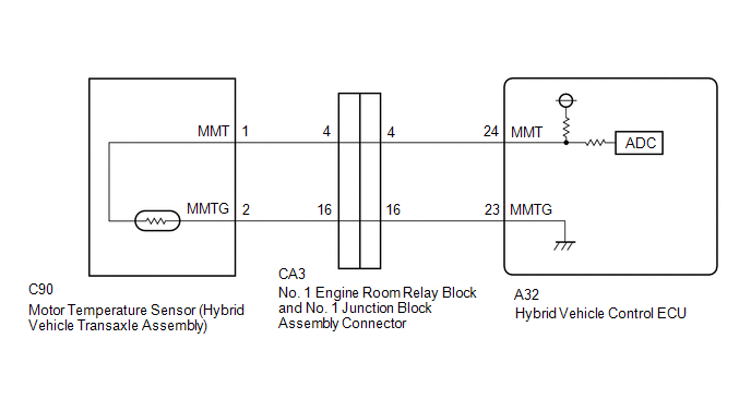 | 8. | CHECK HARNESS AND CONNECTOR (MOTOR TEMPERATURE SENSOR - HYBRID VEHICLE CONTROL ECU) |