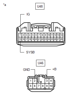 | U48-1 (IG) - Body ground | Engine switch on (IG) | 11 to 14 V |