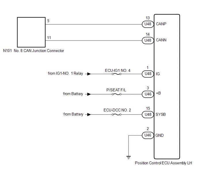 | 1. | CHECK FOR OPEN IN CAN BUS LINES (POSITION CONTROL ECU ASSEMBLY LH BRANCH LINE) |